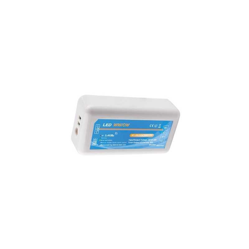 WW+CW 3-zónový prijímač KM-WW+CW-3Z-20, 2x6A 12V/144W 24V/288W s RF prenosom, slúži na ovládanie WW+CW pásov s možnosťou plynulej regulácie farby svetla od WW až po CW, alebo spustenia viacerých dynamických programov. Pri nastavení statickej farby je možné zvýšiť / znížiť intenzitu osvetlenia, pri spustenom programe je možné zvýšiť / znížiť rýchlosť programu. Používa sa v kombinácií s 3-zónovým WW+CW ovládačom, kde na jeden ovládač je možné napárovať až 30ks týchto prijímačov