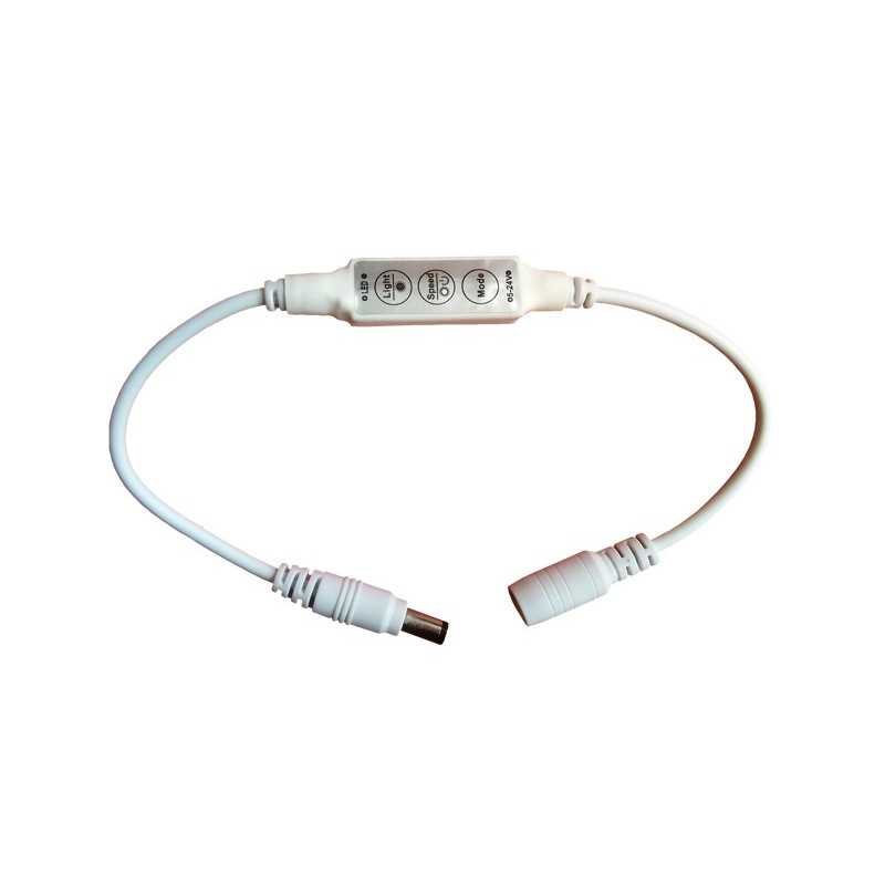 Stmievač KM-W-01, 6A 12V/72W 24V/144W, slúži na stmievanie jednofarebných LED pásov s možnosťou nastavenia intenzity svetlá a spustenia dynamických programov. Ovládanie stmievača je manuálne pomocou tlačitiek.