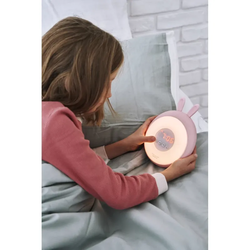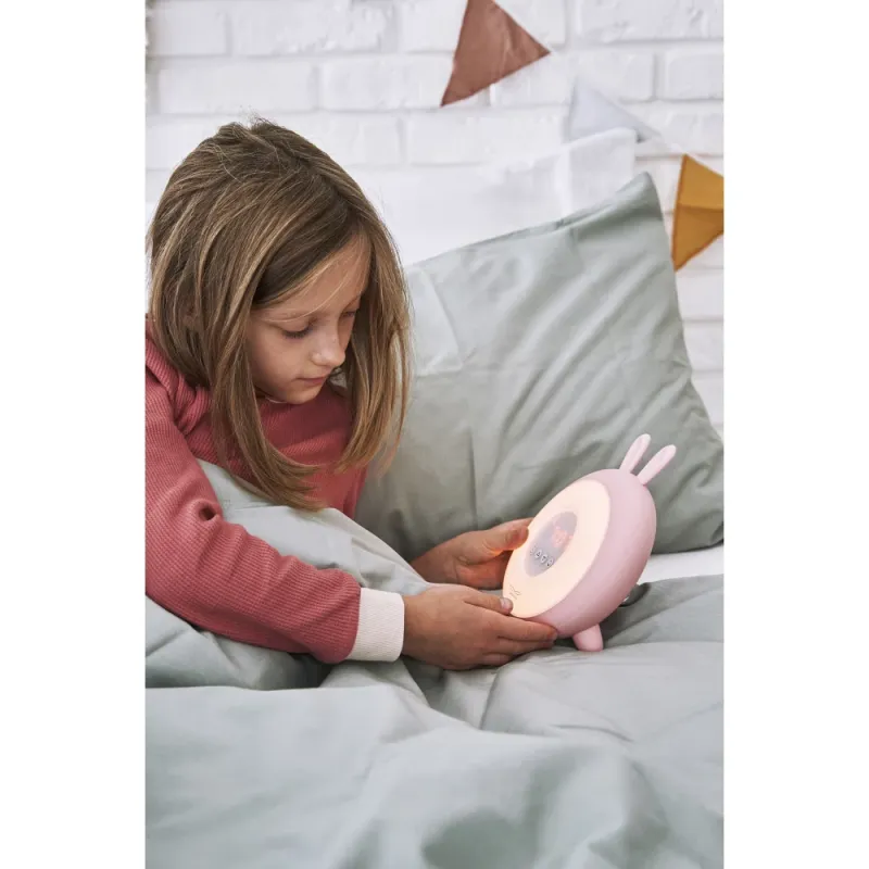 Budík so svetlom v tvare zajačika pomôže vašim deťom príjemne sa zobúdzať aj zaspávať. Vďaka funkcii simulácie západu a východu slnka, zmeniteľnej intenzite svetla a možnosti nastavenia času automatického vypnutia, zabezpečuje pokojný spánok a jemné prebúdzanie. S rozkošným dizajnom zajačika a jemnou ružovou farbou bude tento budík krásnym a praktickým doplnkom do detskej izby.