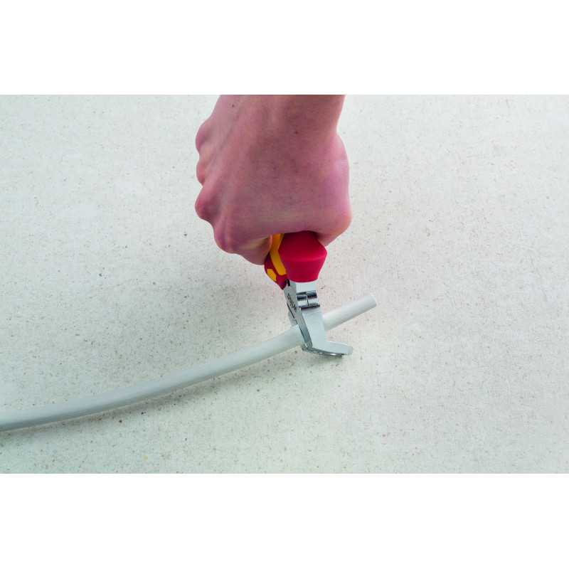 Použití: Vhodné ke stříhání měkkých a tvrdých drátů i kabelů, např. vedení NYM. Kromě toho jsou vhodné k odpláštění kruhových kabelů a kabelů pro vlhké prostory a odizolování vodičů na obtížně přístupných místech jako např. v odbočovacích a rozdělovacích krabicích.