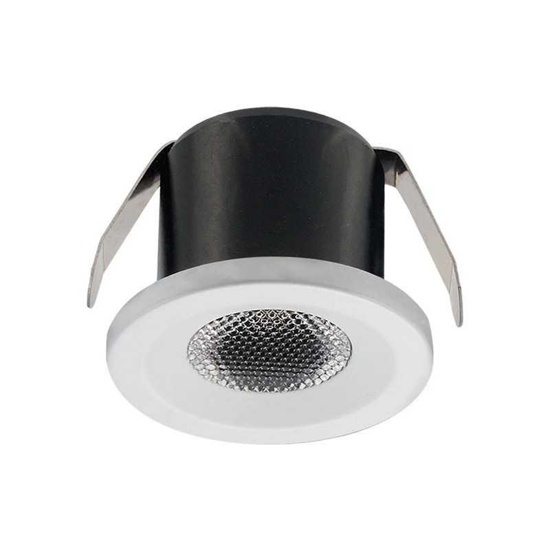 Svietidlo ZANZI-M 3W LED 4000K 225lm zápustné, vhodné pre osvetlenie interiérov, s výkonom 3W, farbou svetla 4000K neutrálna biela, svietivosťou 225lm, napájacím napätím 100-240V 50/60Hz. Svietidlo je vyrobené z hliníka a plastu v bielom farebnom prevedení v krytí IP20, s energetickou triedou F. Montážny otvor pre osadenie svietidlá je D25mm.