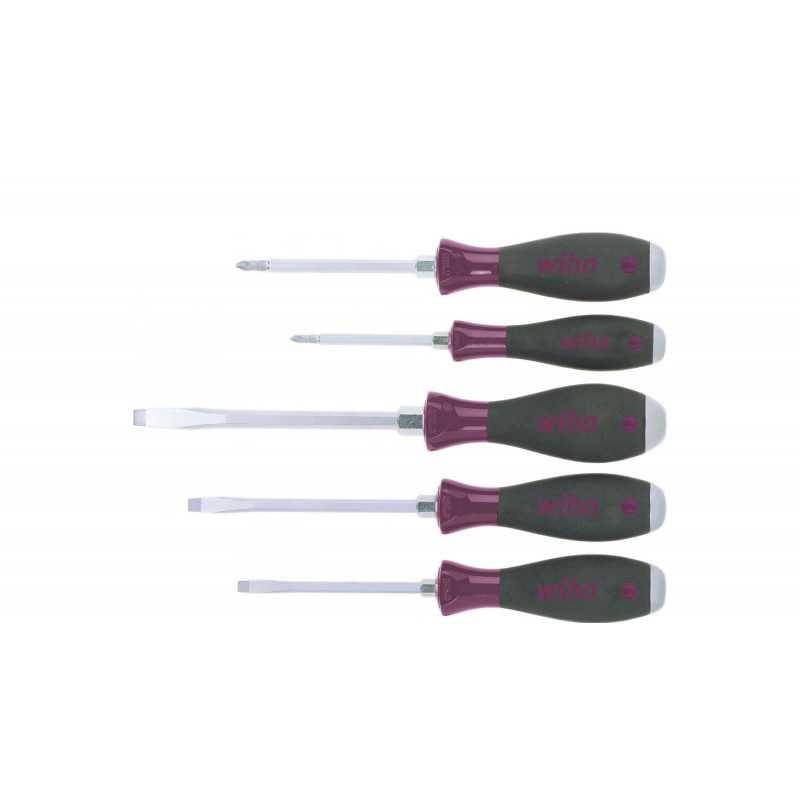 V olejnatém nebo vlhkém pracovním prostředí hrozí nebezpečí, že rukojeť šroubováku poskytuje malou oporu a nemůžete použít vyšší momenty. Šroubovák MicroFinish tomu brání svým jemným mikro povrchem a garantuje optimální úchyt. Masivní ocelová krytka na konci rukojeti umožňuje použití cílených úderů kladiva k uvolnění příliš utažených šroubů. Díky přímému propojení ocelové krytky a dříku je energie úderu předávána beze ztrát. Díky šestihrannému nástavci na dříku mohou být pomocí maticového klíče přenášeny vyšší momenty. Šroubováky Wiha se navíc vyznačují svou rafinovanou koncepcí velikostí rukojetí. S dlouhými, štíhlými velikostmi rukojetí mohou být malé šrouby bezpečně a rychle zašroubovány. Pro zašroubování velkých šroubů jsou k dispozici velkoobjemové velikosti rukojetí, se kterými mohou být vytvářeny vyšší momenty. Kromě toho jsou různé velikosti rukojeti přizpůsobeny velikosti ruky šroubujícího profesionála.