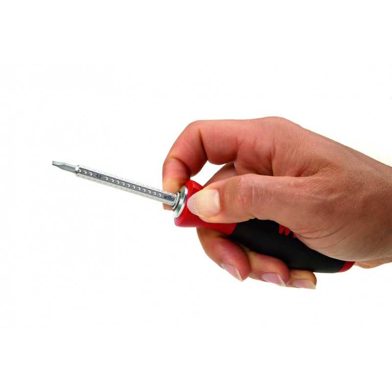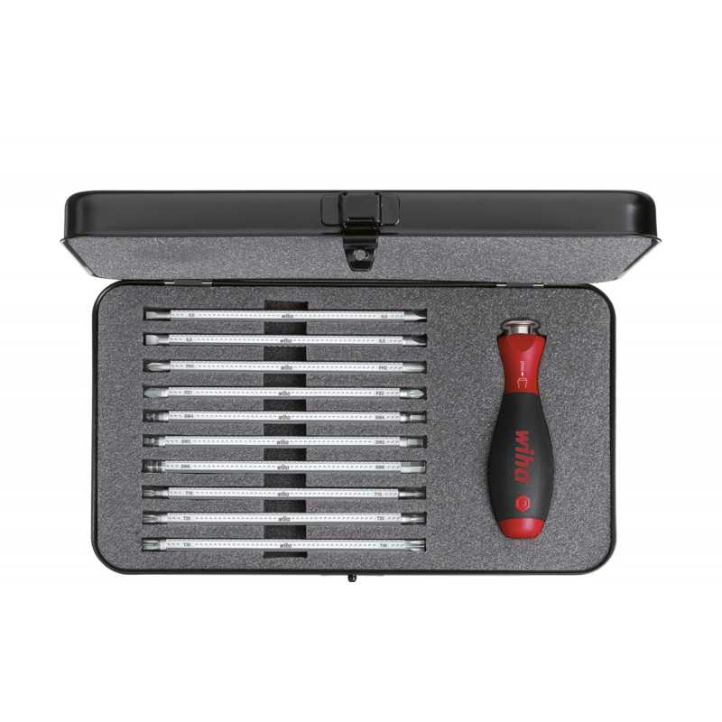 K dosažení hluboko položených šroubů ve slepých otvorech nestačí dřík ve standardní délce. Nápravu představuje sada SYSTEM 6 – mnohostranné nářadí s výměnnými částmi šetřící místo. V kombinaci s výměnnými dříky SYSTEM 6 může být požadovaný profil dříku rychle a jednoduše přesazen a délka dříku individuálně nastavena. S výměnnými dříky SYSTEM 6 může být dosaženo délky mezi 42 a 114 mm. Rukojeť SYSTEM 6 je kompatibilní se všemi výměnnými dříky SYSTEM 6 Wiha (série 284). Kuličkové upnutí ClickStop zaručuje bezpečné držení dříků. Navíc je ergonomicky tvarovaná rukojeť SoftFinish doporučována lékaři a terapeuty. Prostorově úsporné ukládání nástrojů zajišťuje robustní svinovací taška.