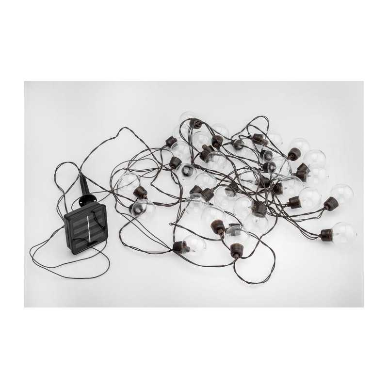 Solárne svietidlo GIRLANDA GLADI 20LED s celkovou dĺžkou 7,5m, s krytím IP44 vhodné do exteriérov, farba svetla teplá biela, čas svietenia pri plnom nabití 8h.