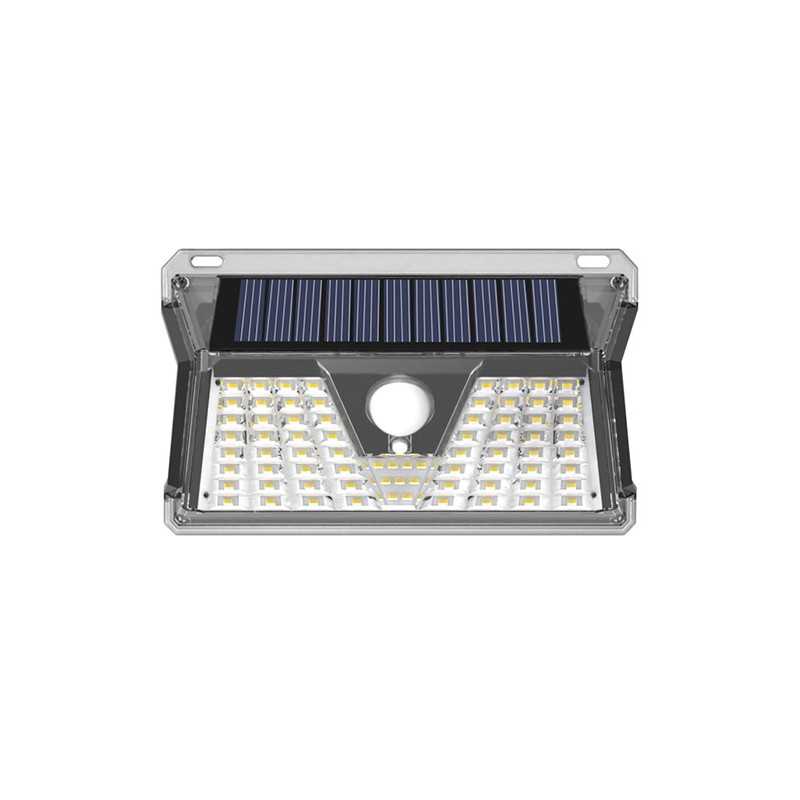 SAHARA-300W 6000K je solárny vodotesný reflektor IP65 vybavený SMD LED diódami a fotosenzorom. Priehľadný difúzor. Telo z ABS v čiernej farbe, polykarbonátový solárny panel a sklo. Monokryštalický panel 5V - 10W. Batéria: Lítiová 2xLiFePO4 3,2V 24000mAh, Životné cykly > 1200, Doba nabíjania: 6-8h Autonómia: 12-14h Je vybavená diaľkovým ovládačom s nasledujúcimi funkciami: ON - svietivosť 100%, svetlo zhasne po 12 -14 hodín. OFF - Svetlo vypnuté. Vysoká svietivosť - Tlačidlo je účinné, keď je svetlo zapnuté, svietivosť sa nastaví na 165 % a svetlo zhasne po 3 hodinách. Mierna svietivosť - Tlačidlo je účinné, keď je svetlo zapnuté, svietivosť sa nastaví na 35% a svetlo zhasne po 12-14 hodinách. 2H - Udržujte svietivosť na 165%, svetlo sa vypne po 2 hodinách. 4H - Svietivosť sa nastaví na 100 %, svetlo sa vypne po 4 hodinách. 6H - Svietivosť sa nastaví na 100 %, svetlo sa vypne po 6 hodinách. AUTO - Svietivosť sa nastaví na 100%, svetlo sa vypne po 12-14 hodinách.