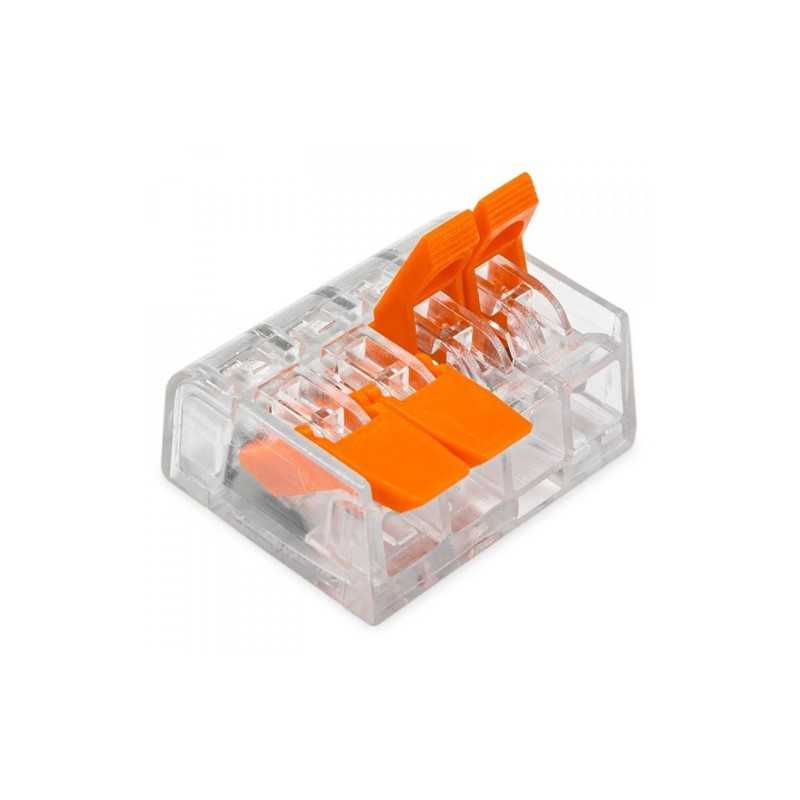 Svorka bezskrutková KM-3D-V-01, obj. kód 73000053, ktorá je určená pre spojenie troch vodičov nasunutím a zacvaknutím.
